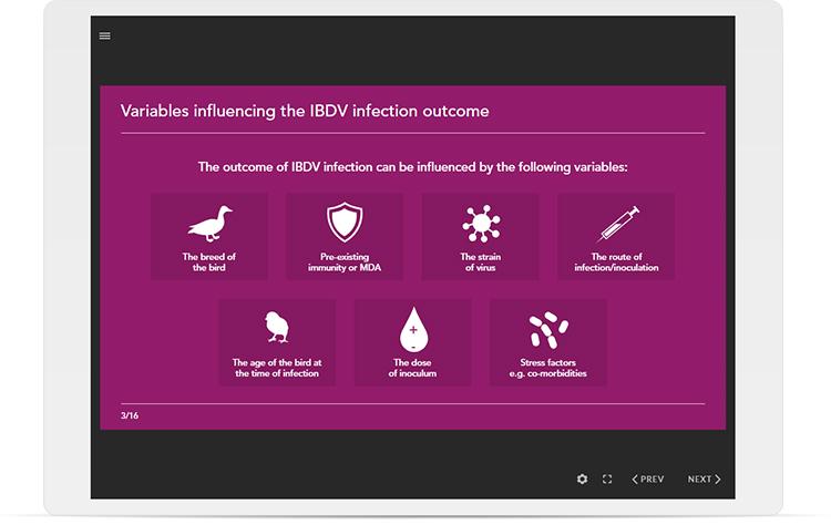This eLearning course designed in collaboration with subject matter experts conducting research on infectious bursal disease at Pirbright, is intended to broaden participants understanding of infectious bursal disease, and the virus which causes it. The course specifically focuses on information that would be useful for laboratory staff undertaking laboratory diagnostic testing of IBDV.