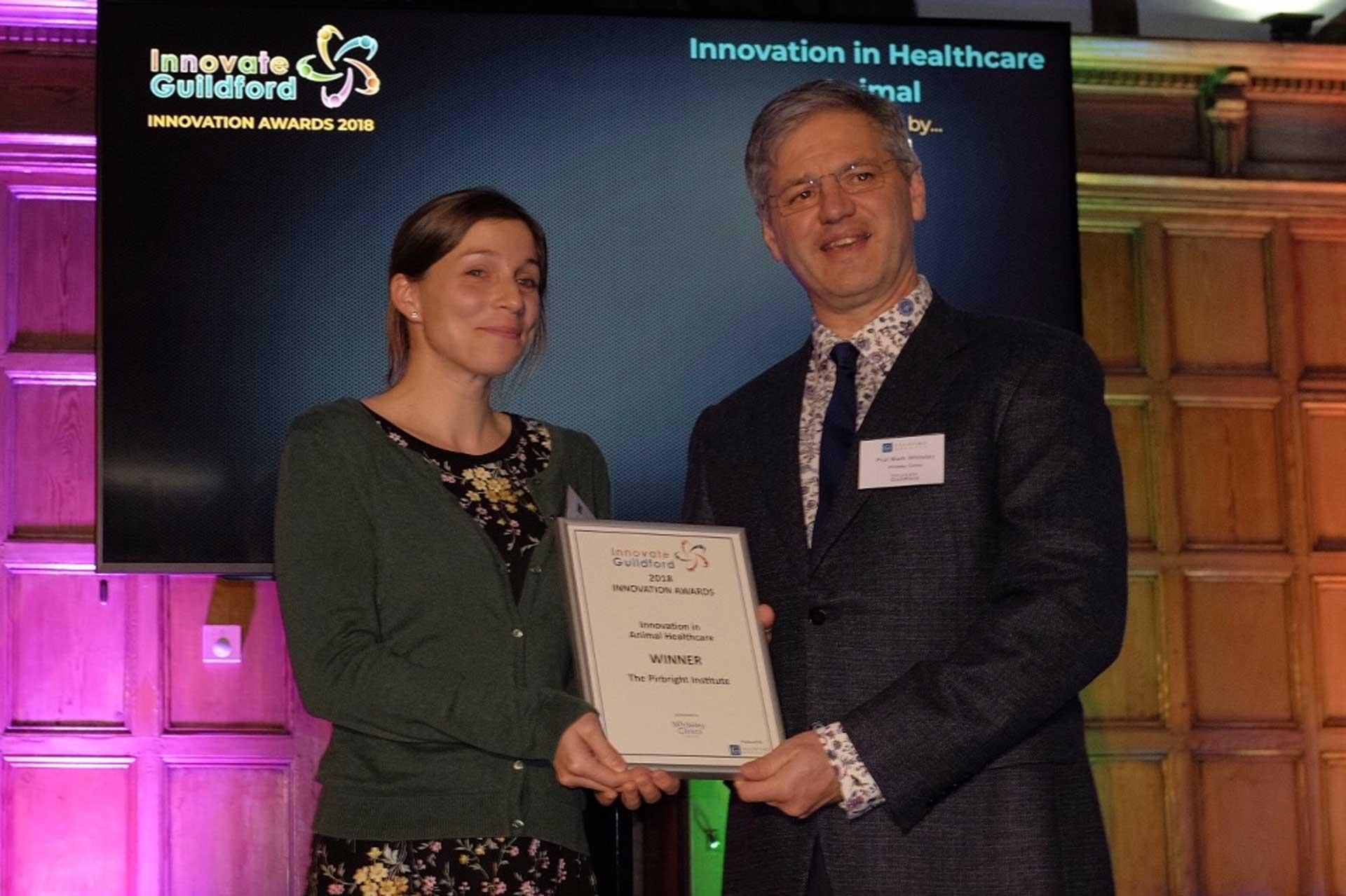 The Guildford Innovation Awards are aimed at celebrating inspirational innovation and promoting Science, Technology, Engineering and Maths ('STEM') subjects in Guildford and surrounding areas. This is the second year the awards have run, with Pirbright’s former PhD student, Tom Whitehead, securing the 2017 Young Innovator of the Year award.